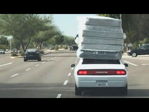Deliveryman Stacks 6 Mattresses on Car Roof