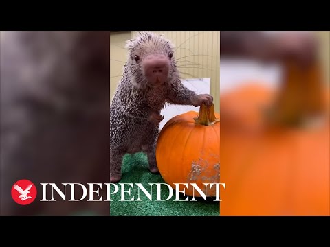 Porcupine munches on Halloween treat at Cincinnati Zoo