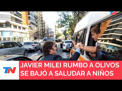 Rumbo a la Quinta de Olivos, Milei se baj贸 a saludar a alumnos que estab...